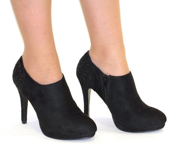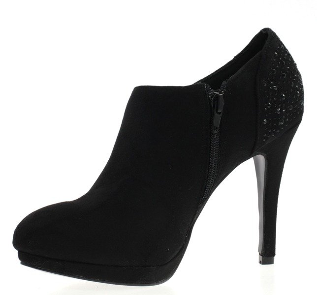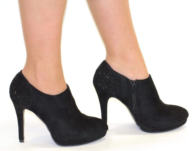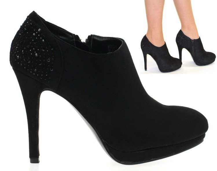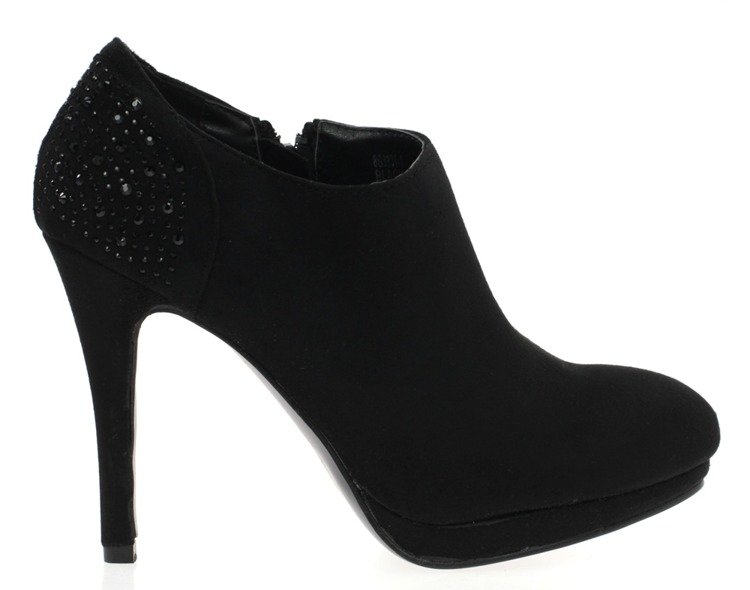- Prawdziwa gratka dla odważnych kobiet- wysokie botki. Obuwie na wysokim słupku. Cholewka ozdobiona błyszczącymi dżetami. Idealna propozycja dla Pań w dobrym stylu!