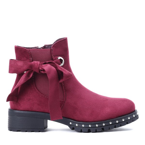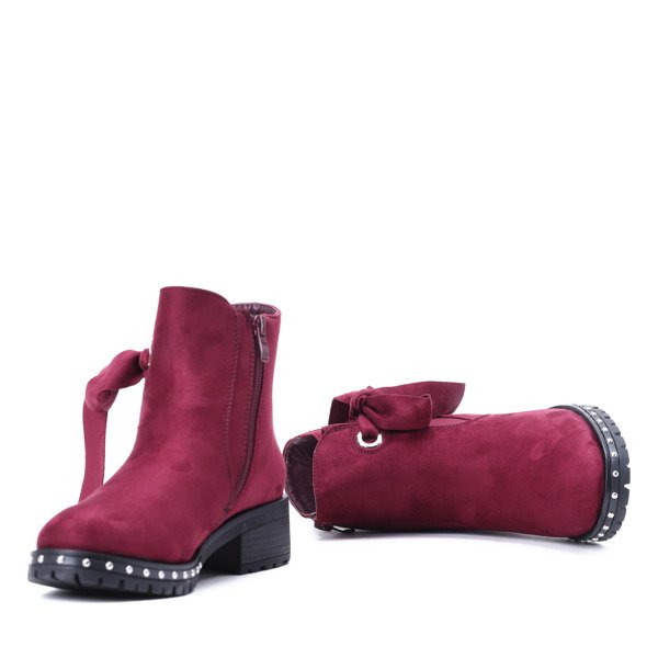 Botki z eko-zamszu w kolorze czerwonego wina - Obuwie