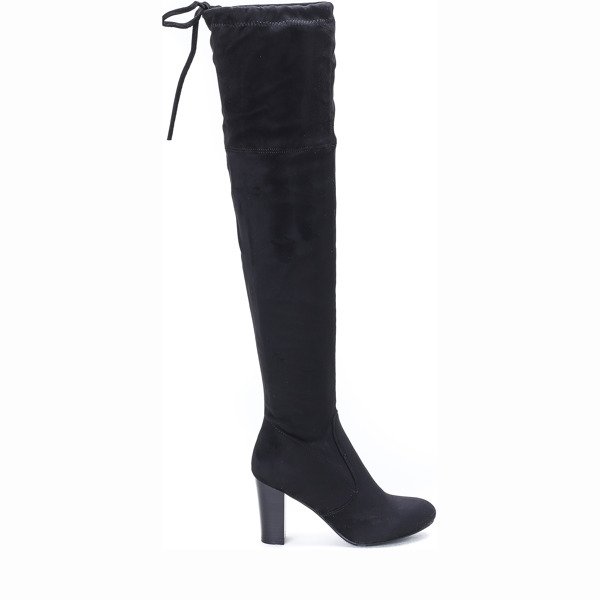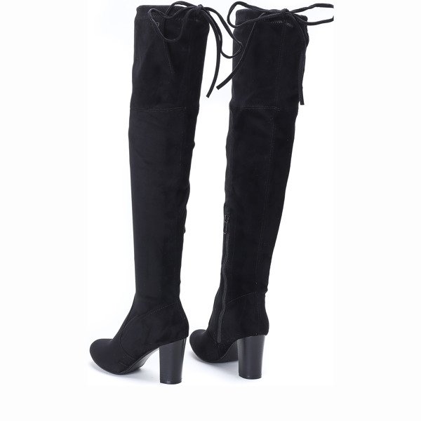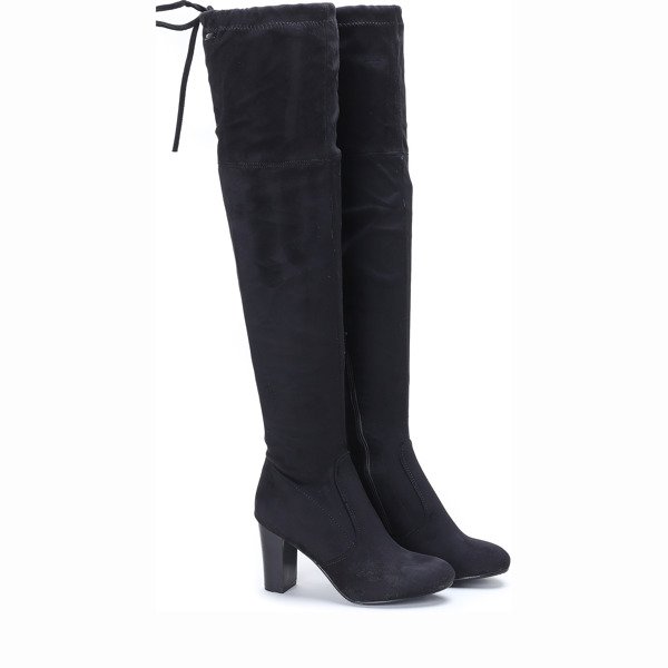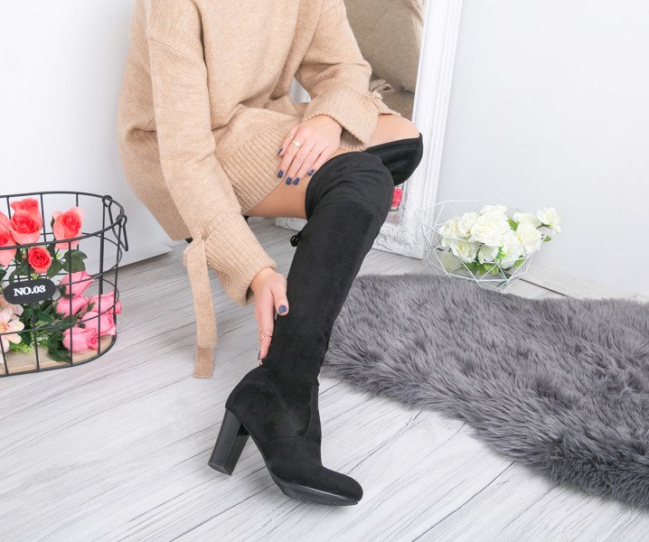 Czarne, długie kozaki na słupku - Obuwie