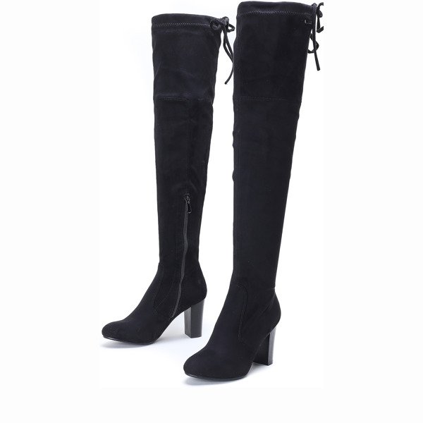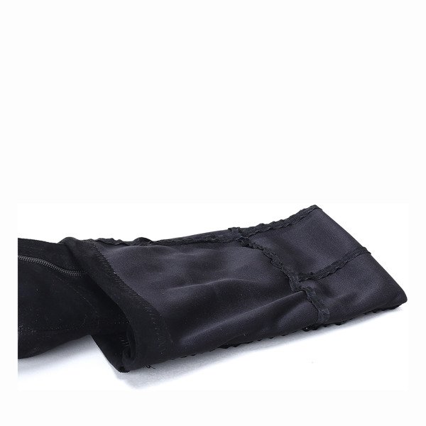 - Długie kozaki wykonane z zamszu. Obuwie zapinane na suwak. Idealnie dopasują się do nogi dzięki sznureczkom na zakończeniu cholewki. Polecane szczególnie do sukienek.