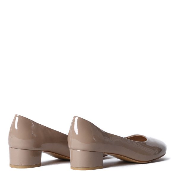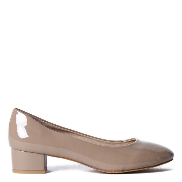 Czółenka na niskim słupku-kolor khaki - Obuwie