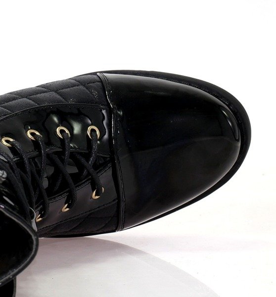 - Workery wykonane z ekologicznej skóry. Solidnie wykonane i bardzo wygodne. Obuwie posiada sznurówki oraz suwak z boku. W środku delikatne ocieplenie. Nadają się do wielu codziennych stylizacji.