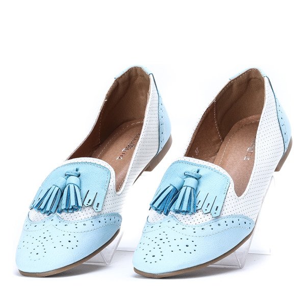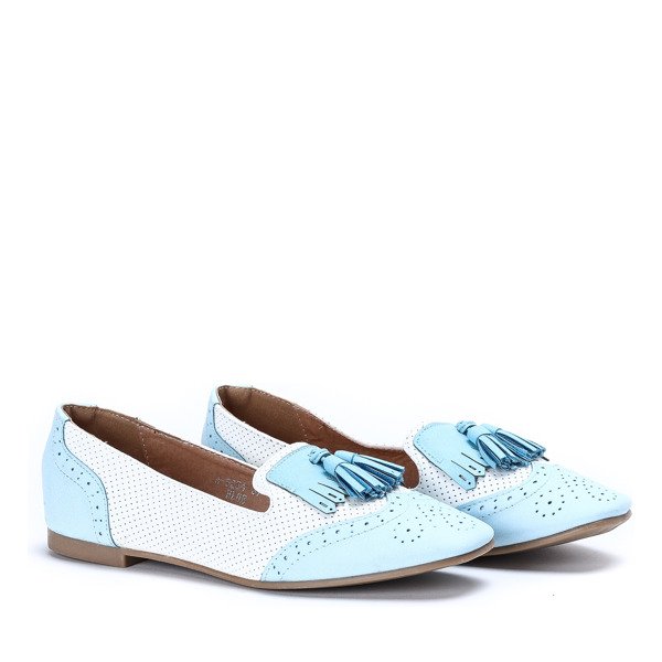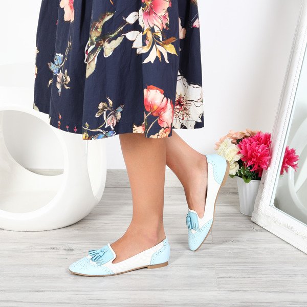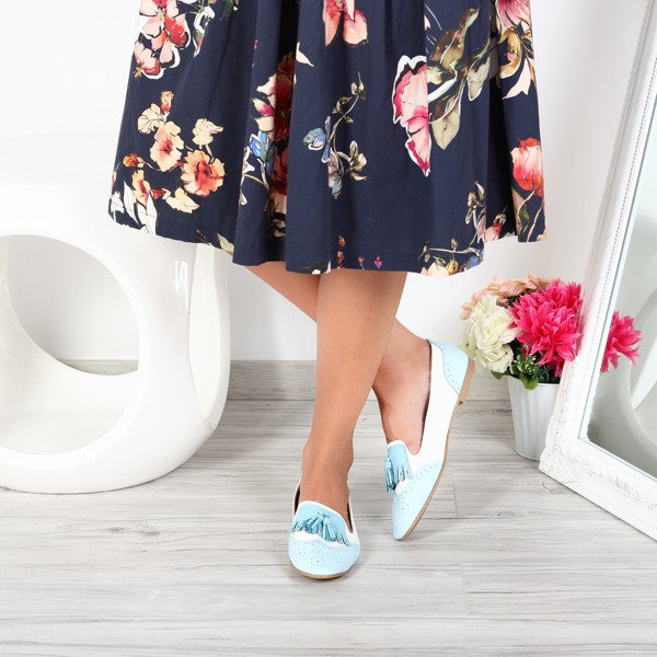 Błękitno-ecru mokasyny stylizowane- Obuwie