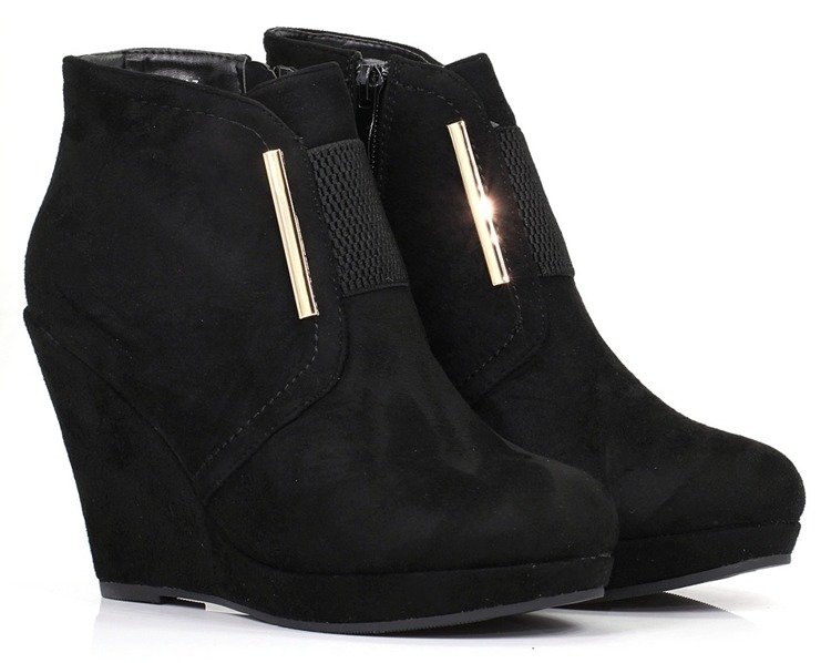 - Unikatowe botki wykonane z eko-skóry zamszowej. Obuwie posiada koturn ok 11.5 cm. Dzięki wszytej gumie na cholewce łatwo dopasowuje się do nogi. Pasują do wielu stylizacji!