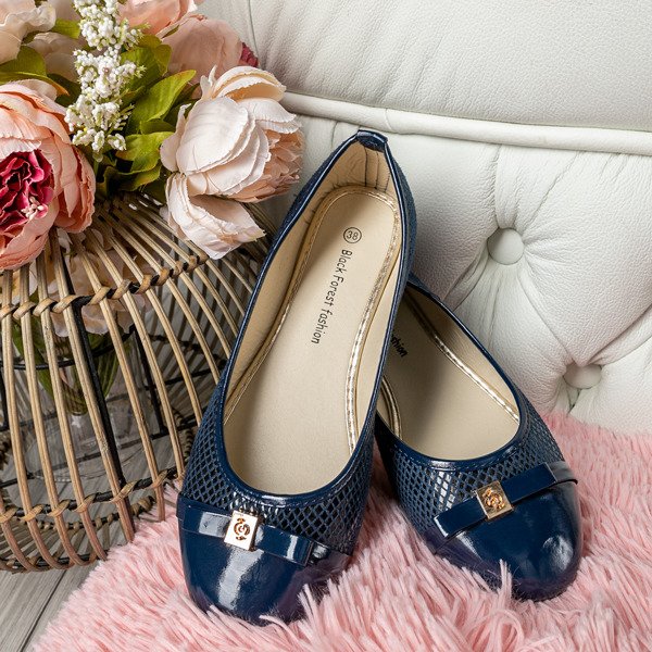 • Класичні темно-сині плоскі підбори. Взуття з екологічного матеріалу, що імітує зміїну шкіру. Жіноче взуття має круглий носок з лакованої шкіри. Модель має шкіряну устілку.