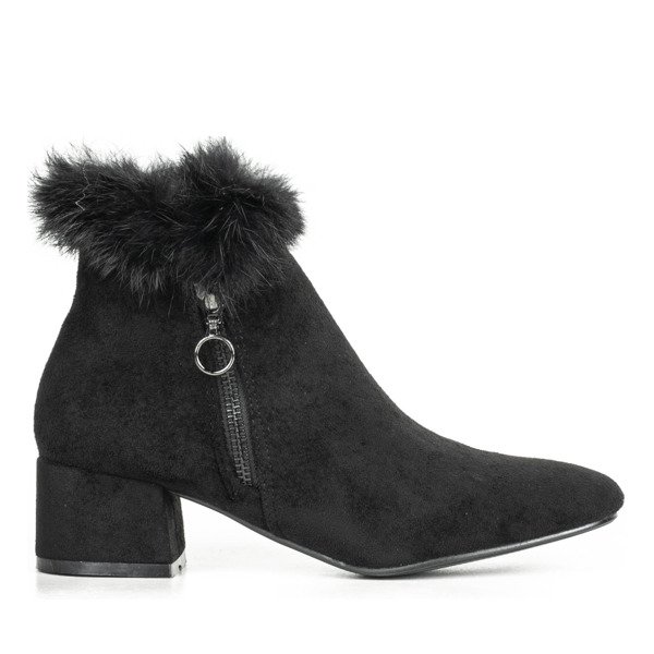 • Чарівні ботильйони на низьких підборах. Виконані з еко-замші. Верх прикрашений хутром. Модель застібається на блискавку збоку. Всередині утеплені. Черевики стануть чудовим доповненням до осінніх та зимових стилізацій.