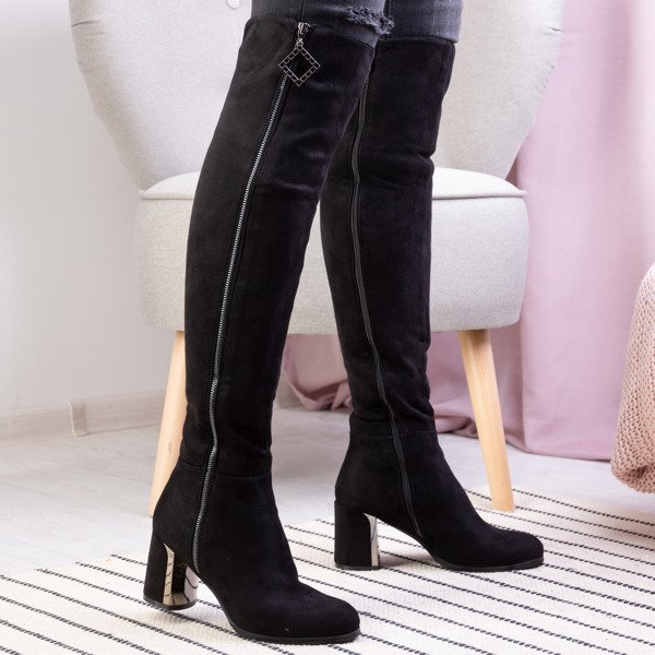 Чорні ботфорти з еко-замші на вищому каблуці Slavonea - Взуття