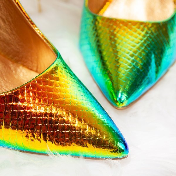 Голографічні золоті туфлі-човники зі зміїним тисненням Rio - Взуття