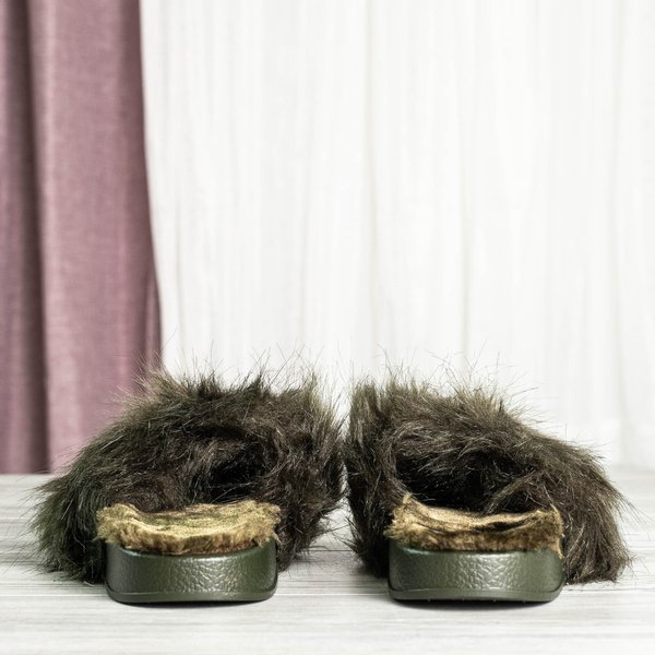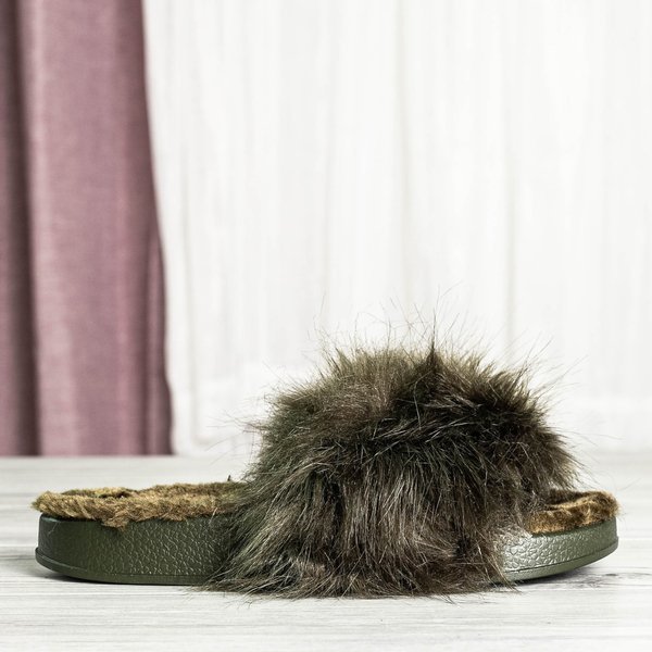 - Чарівні шльопанці на гумовій підошві. Вкладиш і ремінець виготовлені з красивого зеленого хутра. Представлена жіноча взуття буде чудовою у вашому домі!