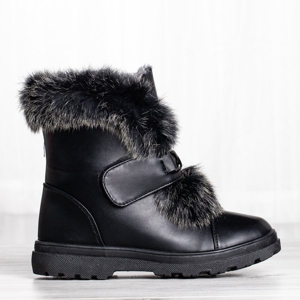 - Чорні зимові чоботи з хутром. Матеріал виконання - еко-шкіра. Представлене взуття має зручну застібку на липучках. Підошва має вирізаний протектор. Халявка прикрашена хутром.