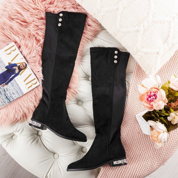 - Елегантні черевики на плоскому каблуці з круглим носком. Верх виготовлений з еко-замші та гнучкого матеріалу. Передня частина взуття і нижня частина утеплені хутром. Застібка на блискавці. Черевики прикрашені красивими каменями.