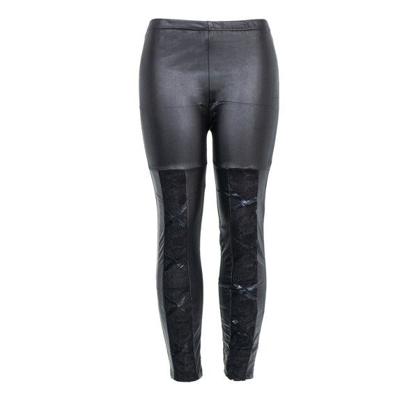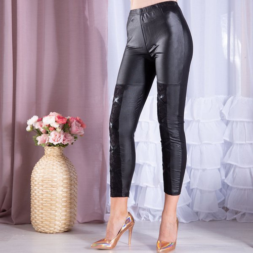 - Чорні класичні жіночі легінси. Матеріал - еко-шкіра. Халошні мають мереживні вставки спереду. Крій чудово підкреслює фігуру і оптично подовжує ноги.