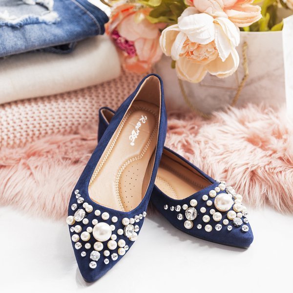 Сині балетки зі стразами та перлинами Eithne - Взуття