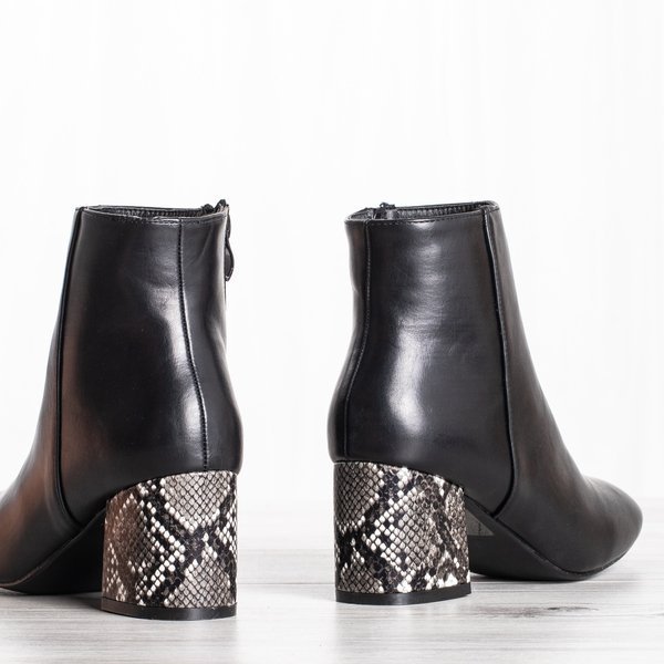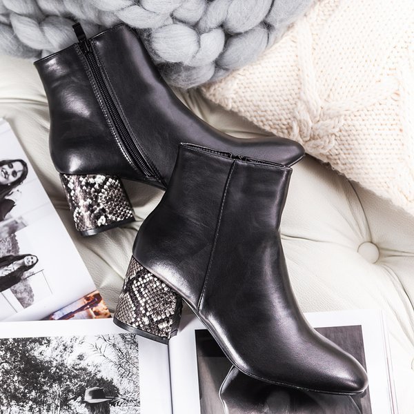 Чорні черевики на каблуці, що прикрашений зміїним принтом Rossana - Взуття