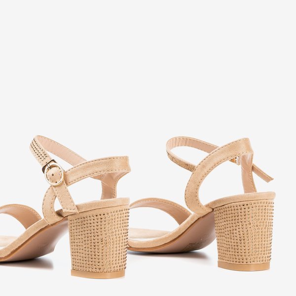 Бежеві босоніжки на високій посаді, прикрашені кубічним цирконієм Тіни - Взуття 1