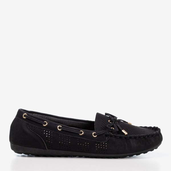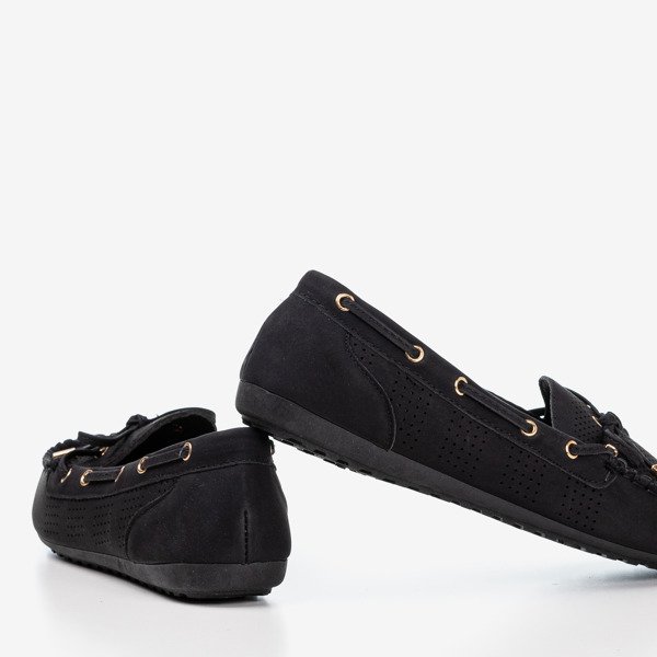 • Неймовірно зручні чорні мокасини для жінок. Верх виготовлений з екологічного шкіряного килимка з ажурним покриттям. Устілка має м’які подушки, що забезпечують надзвичайний комфорт під час використання.