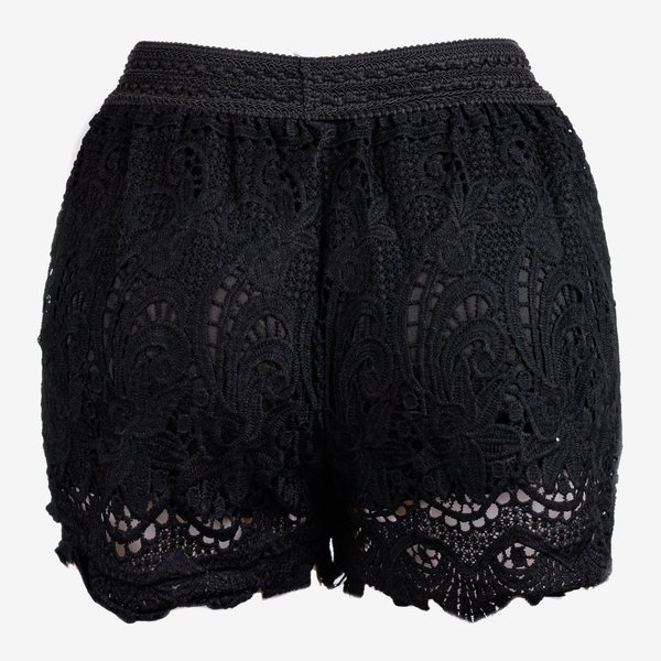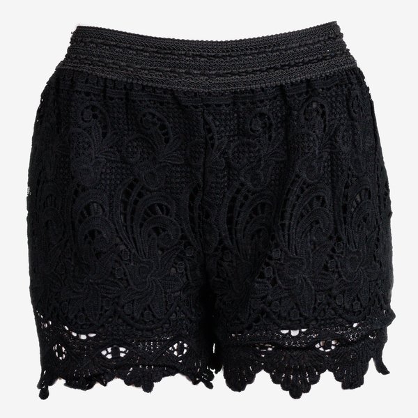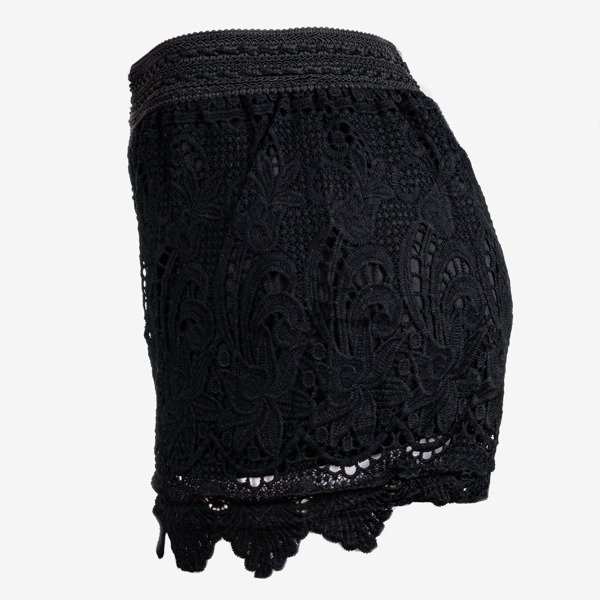Чорні жіночі короткі шорти, прикрашені мереживом - Штани 1