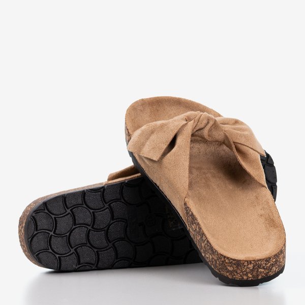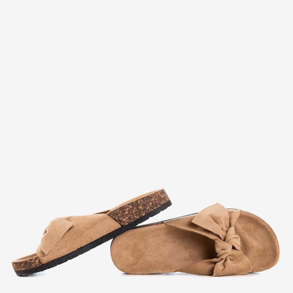 Коричневі еко-замшеві тапочки із бантом від сонця та забави - Взуття