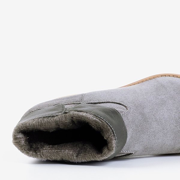 • Черевики типу ковбойських на низькій танкетці з еко-замшевої шкіри. Взуття без застібок і всередині має м’яку хутряну підкладку. Вони стануть чудовою прикрасою для повсякденних образів.