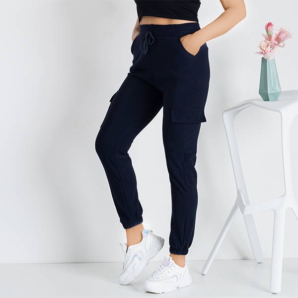 Темно-сині жіночі вантажні штани з кишенями - Одяг