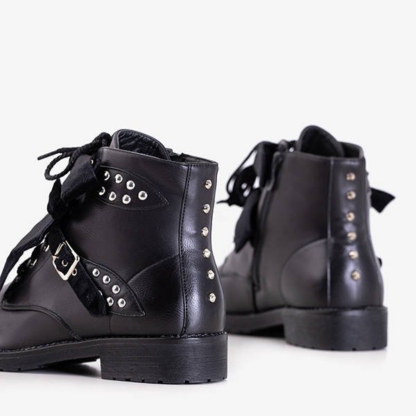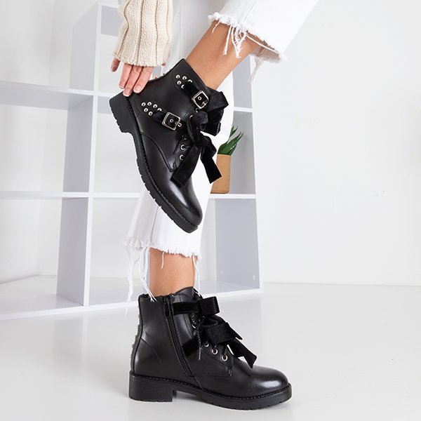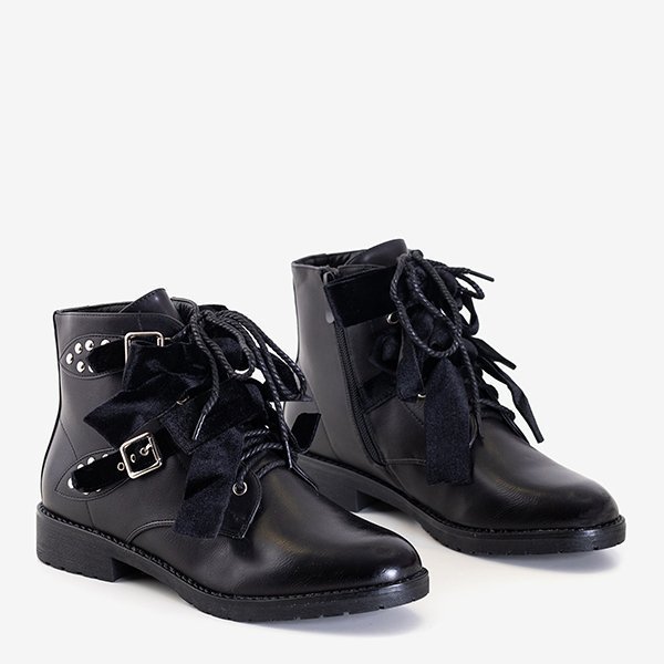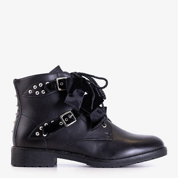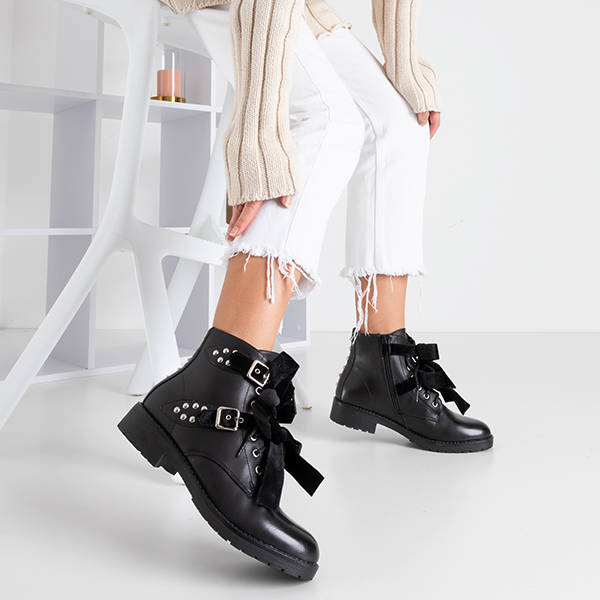 Чорні черевики з шипами та велюровими бантами Caterina - Взуття