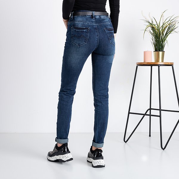 Темно-сині жіночі джинсові штани з поясом - Одяг