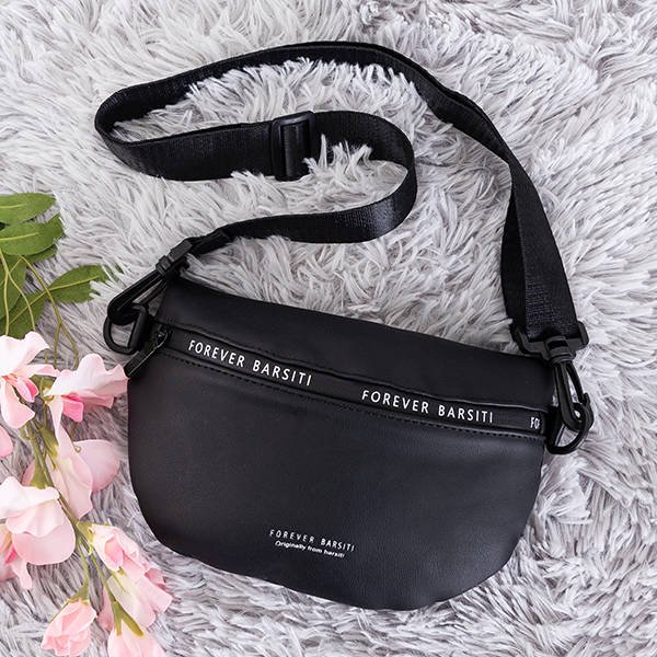 - Невелика сумка для нирок з екологічної шкіри. Посередині додаткова кишеня на блискавці. Регульований ремінець