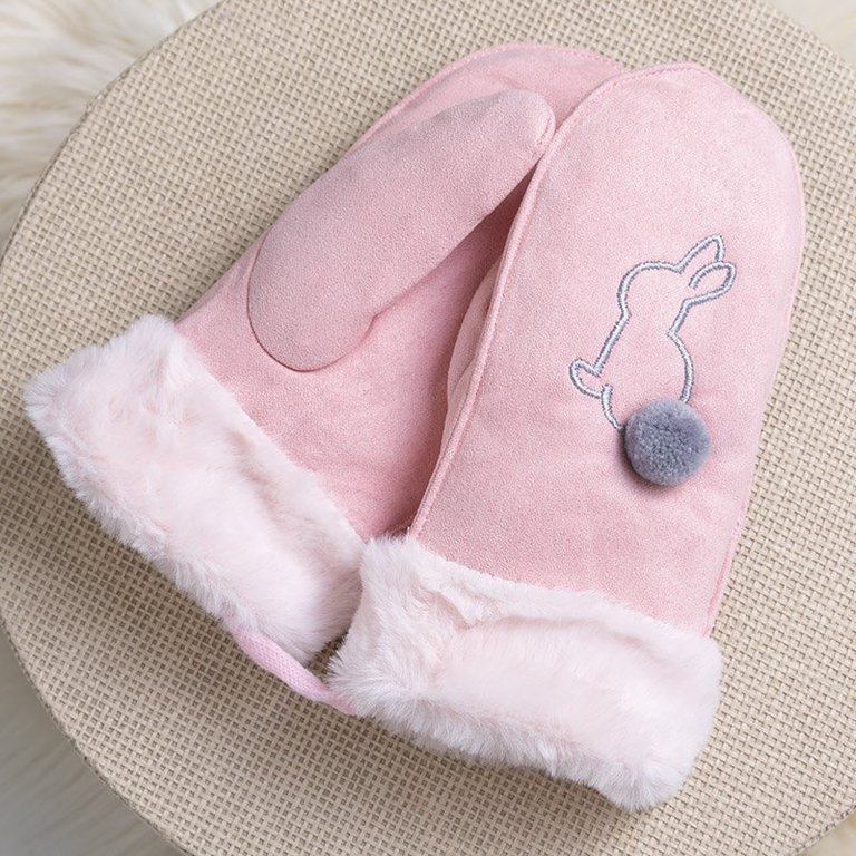 Рожеві дитячі рукавички на нитці з одним пальцем - Рукавиці