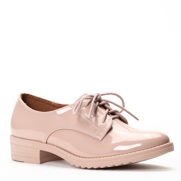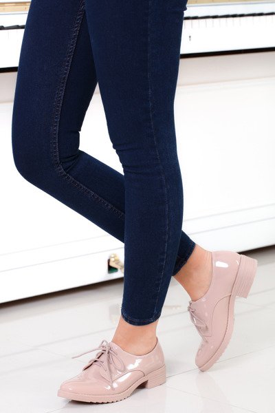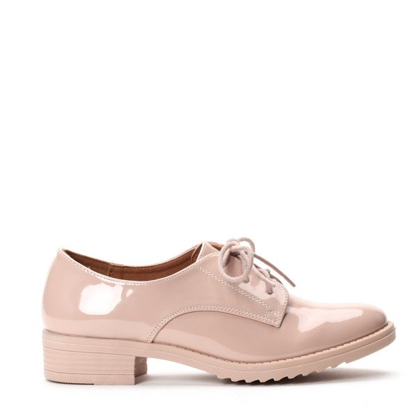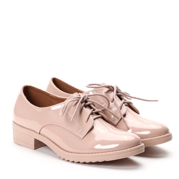 - Stylowe obuwie na wyższej podeszwie stylizowane na ponadczasowe oksfordki, wykonane ze skóry ekologicznej- lakierowanej. Wysoki, wzmacniany nosek gwarantuje wygodę podczas długiego noszenia. Wkładka z ekologicznej skóry.