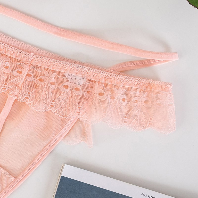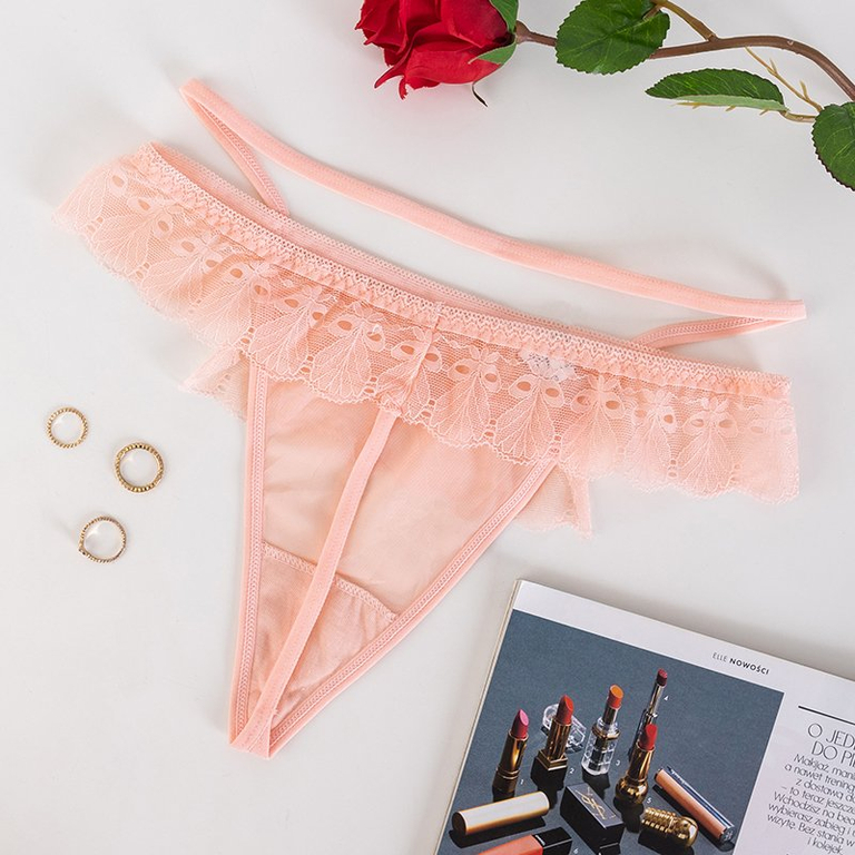 Мереживні стрінги в персиковому кольорі - Нижня білизна