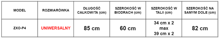 | Total length (cm) | Bottom width (cm) | Waist (cm) | Hip (cm) |
