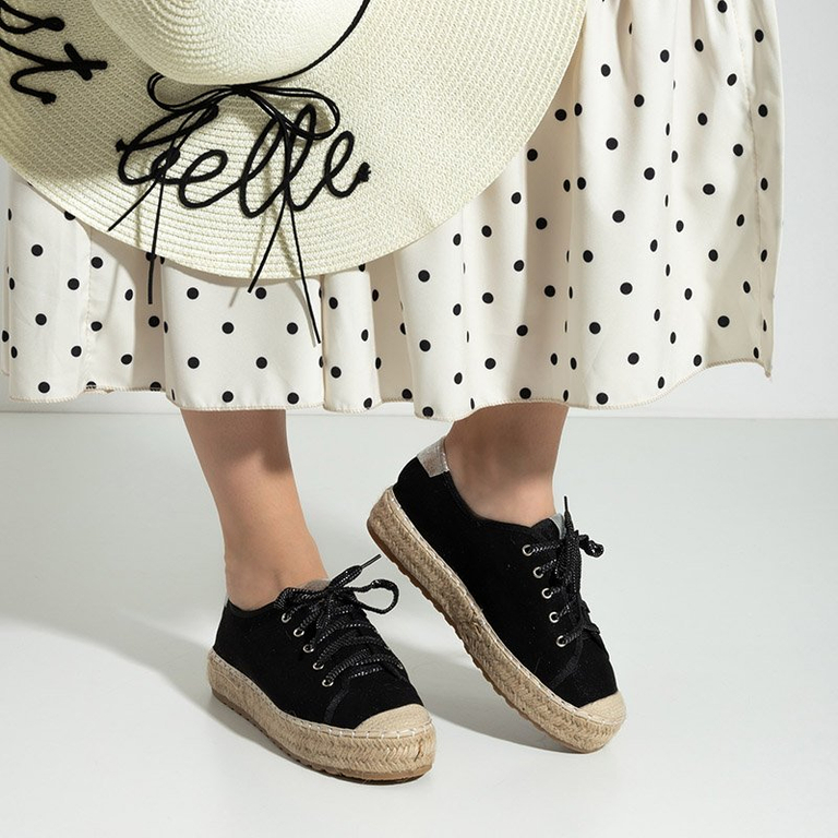 • Зручні жіночі кеди типу еспадрильї. Виконані з мерехтливої еко-замші. Модель на шнурівці. Всередині тканинна устілка. Підошва оздоблена джутовою ниткою. Стильне жіноче взуття на весну!