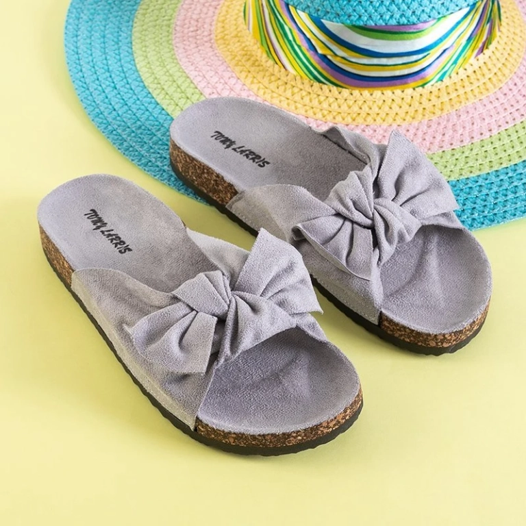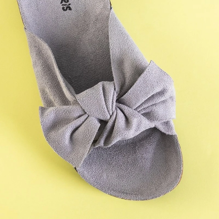ВИХІД Світло-сірі жіночі тапочки з бантиком Alanza - Взуття