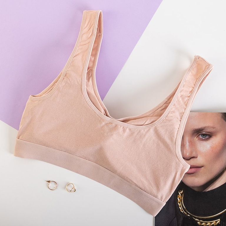 - Зручний жіночий бавовняний бюстгальтер на широких бретелях. Знімні чашки та еластична резинка забезпечать комфорт протягом дня.