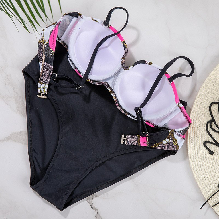 • Модний купальник з принтом. Трусики з високою посадкою. Бюстгальтер push-up із застібкою ззаду, на регульованих бретелях.