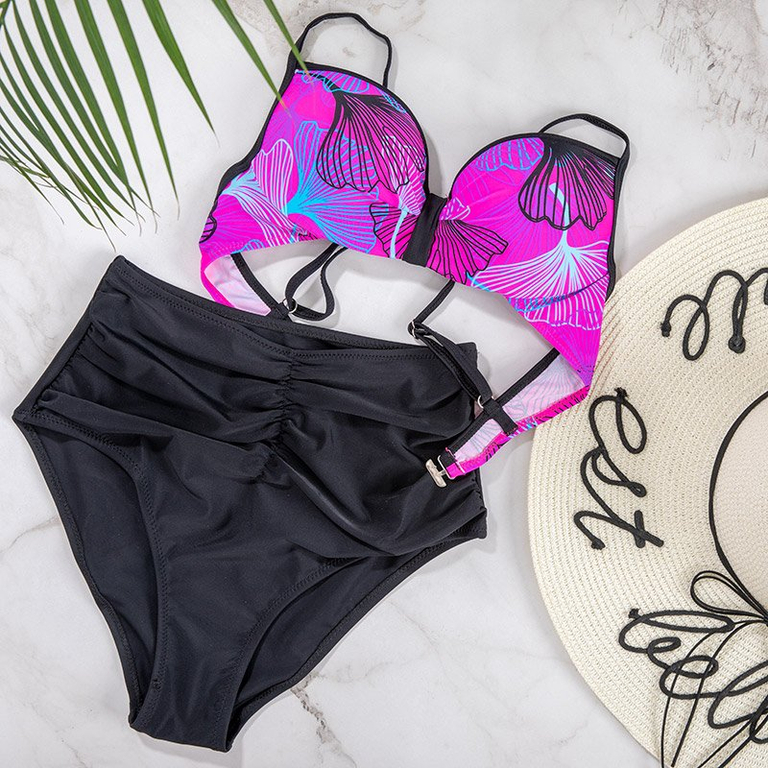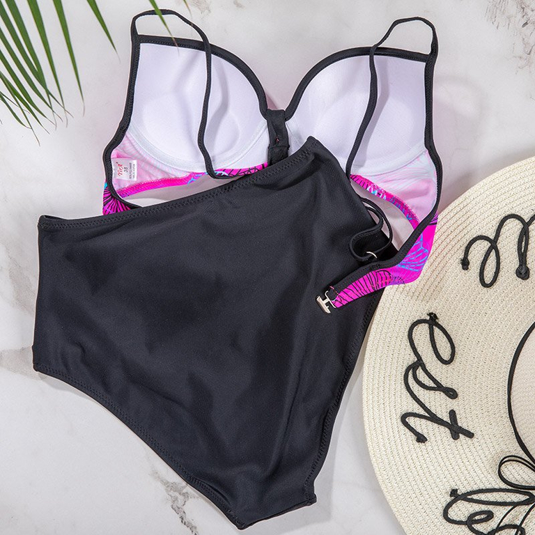 • Модний купальник з принтом. Трусики з високою посадкою. Бюстгальтер push-up із застібкою ззаду, на регульованих бретелях.