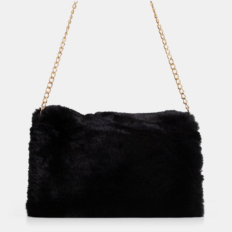 Чорна жіноча хутряна сумка