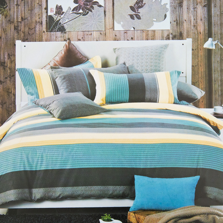 Бірюзова постільна білизна в смужку 200x220, комплект з 4-х частин