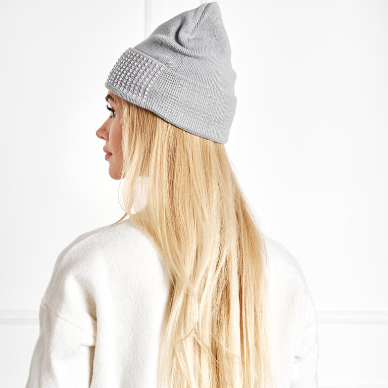 Сіра жіноча шапка зі стразами