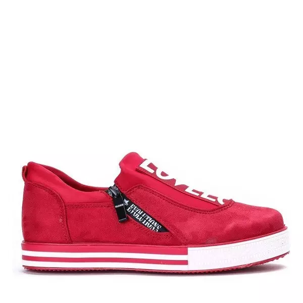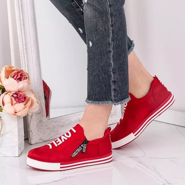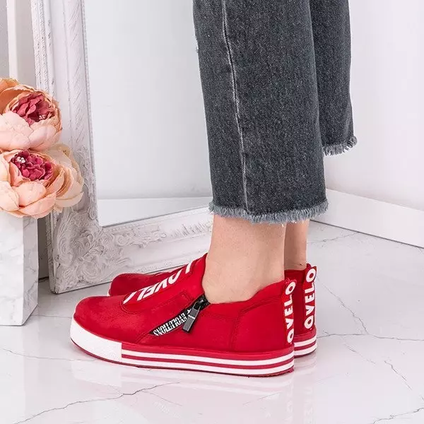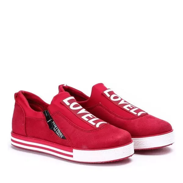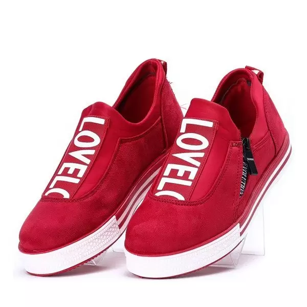 - Спортивне взуття на плоскій підошві білого кольору. Виготовлений із поєднання м'якої екологічної замші та тканини. Прикрашена стрічкою з написом "LOVELO". Примітка: на виробі є сліди клею.