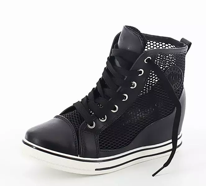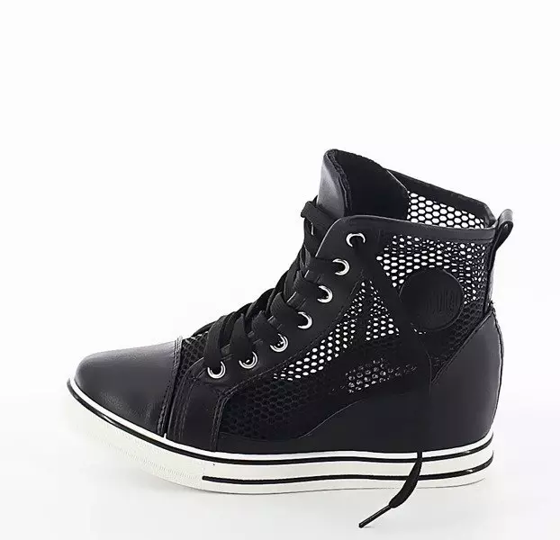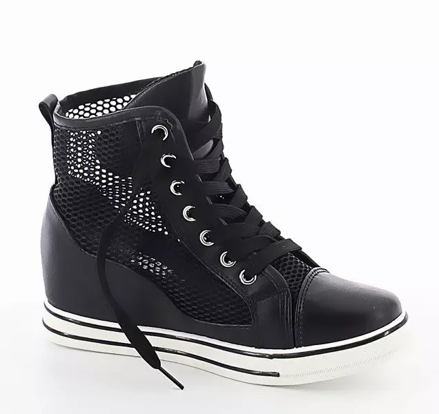 • Незвичайні сітчасті кросівки з додаванням екошкіри. Цілий зав'язаний шнурками. Гумова підошва, характерна для кросівок. Примітка: виріб має сліди клею на матеріалі.
