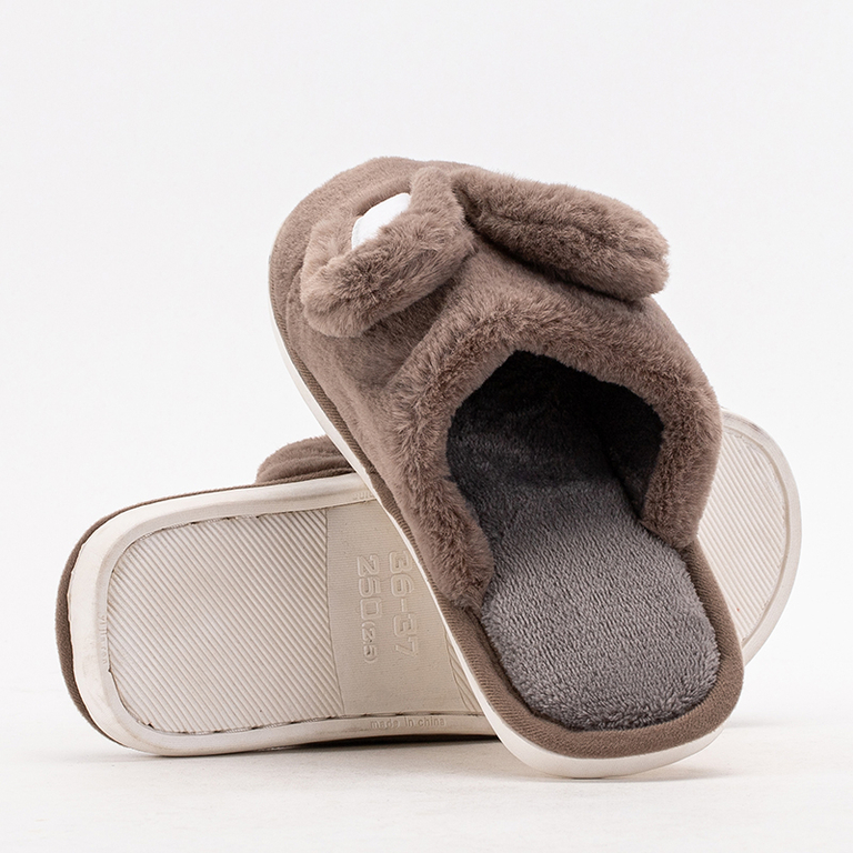 - Красиві жіночі тапочки з м'якого на дотик хутра. Модель на гумовій підошві, прикрашена вушками. Представлене взуття ідеально підійде для зимових моментів, проведених вдома.