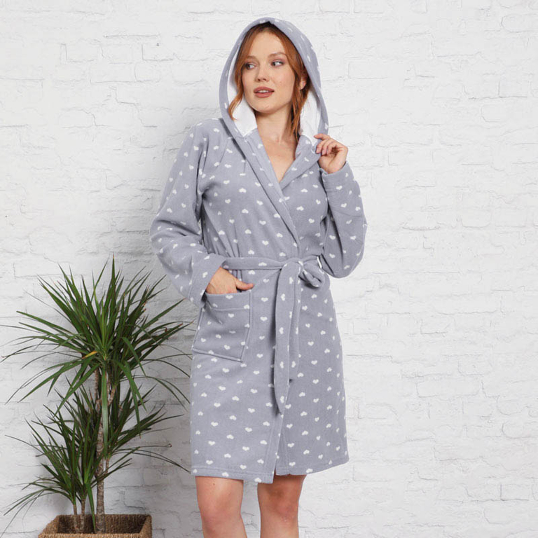 Сірий жіночий халат з сердечками