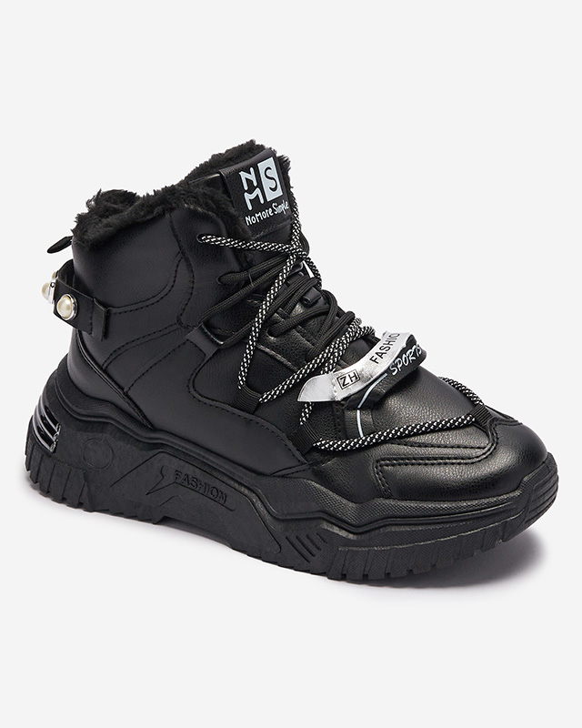 • Спортивні кросівки на масивній підошві, утеплені хутром. Модель прикрашена декоративними вставками та перлами, зав'язується на подвійну шнурівку. Ідеально підходить для холодних днів!