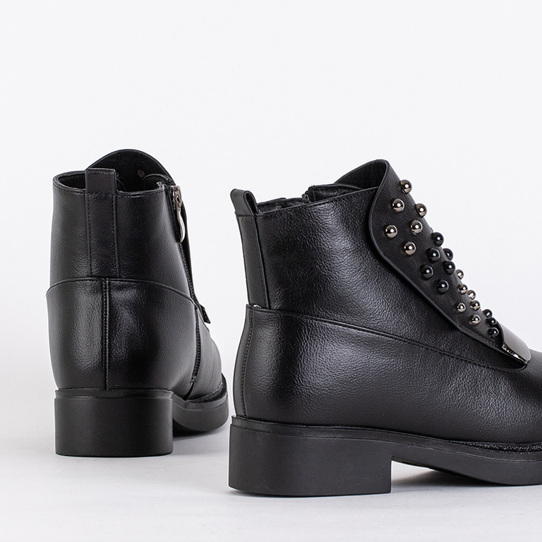 - Фантастичні дитячі черевики з еко-шкіри. Головним елементом моделі є язичок, прикрашений безліччю чорних і сріблястих прикрас. Всередині модель утеплена приємним на дотик, густим хутром. Застібається на блискавку. Взуття, яке сподобається кожній модниці!