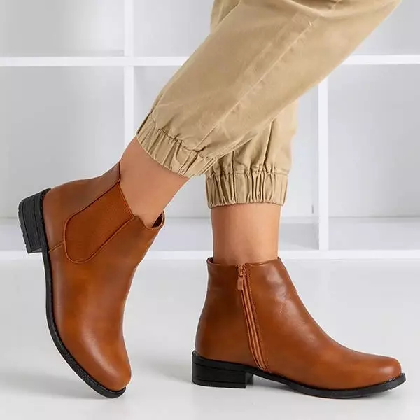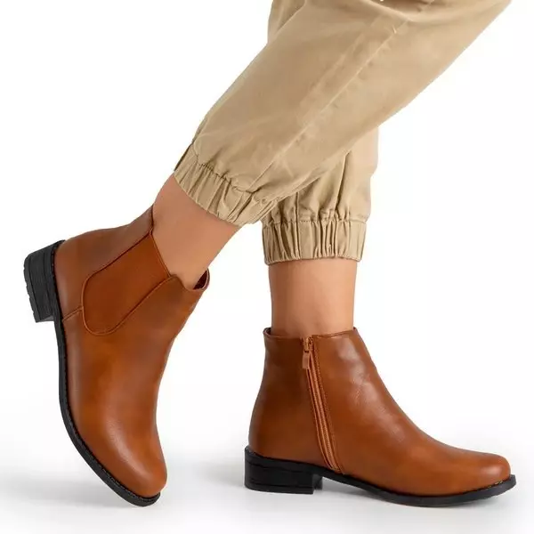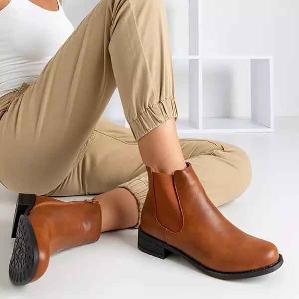 OUTLET Світло-коричневі жіночі чоботи Челсі на плоскому каблуці Timea - Туфлі