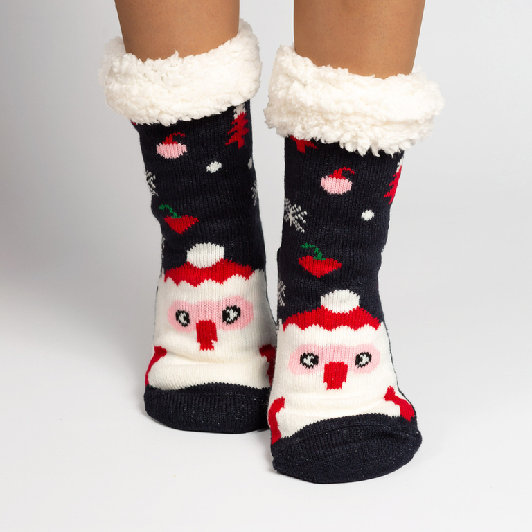 Темно-сині жіночі теплі шкарпетки з різдвяним принтом