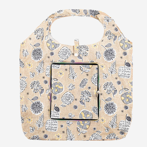 • Велика сумка з візерунком, складена за розміром гаманця. Виготовлений з жорсткого водонепроникного матеріалу а-ля клейонка. Міста і дуже практична модель - ідеальна для повсякденного шопінгу!