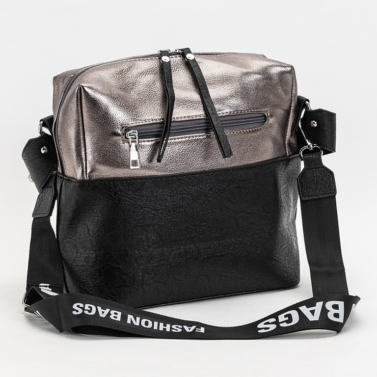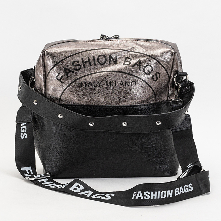 Графітово-чорна жіноча сумка з написами