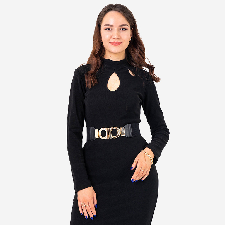 Чорний еластичний ремінь з декоративною золотою пряжкою